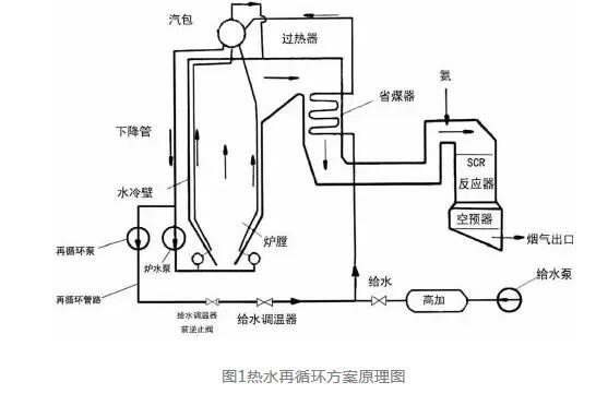 煙側(cè)方面:杜云貴等建立脫硝模型模擬不同工況下流場分布及氨氣的混合,增加導(dǎo)流設(shè)施改善脫硝系統(tǒng)的穩(wěn)定性;文獻(xiàn)介紹了省煤器旁路煙道入口位置選擇問題;水側(cè)方面:對于汽包鍋爐,譚青等采用鍋爐爐水與省煤器給水混合法提高給水溫度以降低欠焓水的吸熱量,提高煙氣出口溫度。對于強(qiáng)制循環(huán)鍋爐,謝尉揚(yáng)等在爐水循環(huán)泵出口處引出循環(huán)水加熱省煤器給水。徐昶等人提出在省煤器進(jìn)口位置引出管道至下降管,根據(jù)負(fù)荷調(diào)節(jié)省煤器進(jìn)口水量以達(dá)到調(diào)節(jié)煙溫目的。